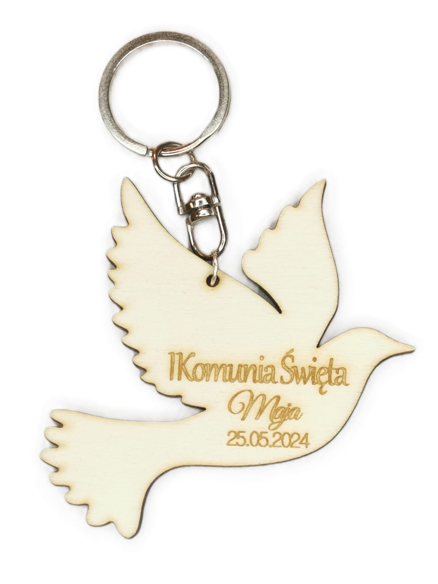 Podana cena dotyczy 1 sztuki breloka gołąbka z opakowaniem. Prosimy o podanie imienia i daty do spersonalizowania zawieszki.