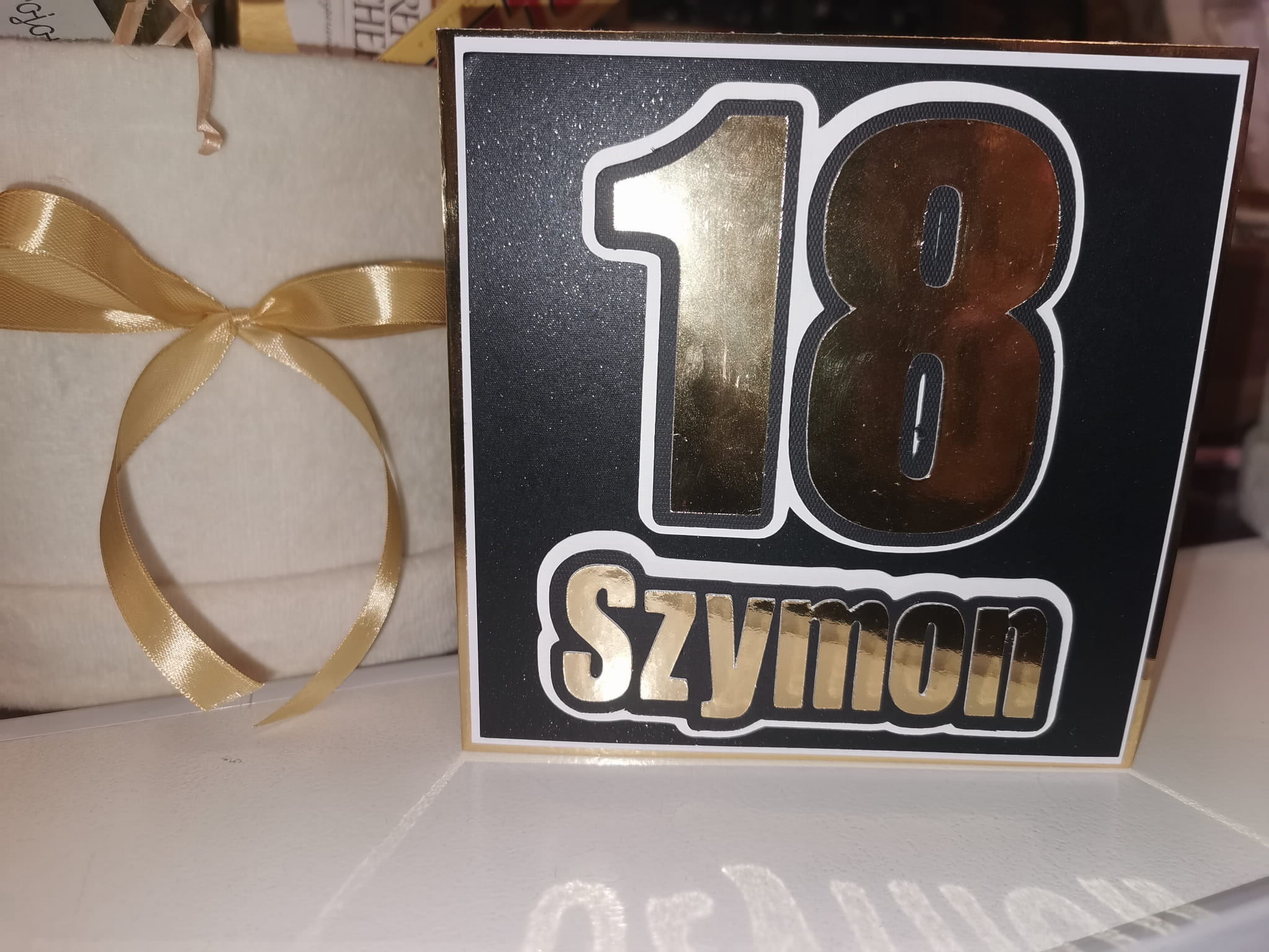 Kartka na 18 urodziny w kolorze złoto-czarnym
