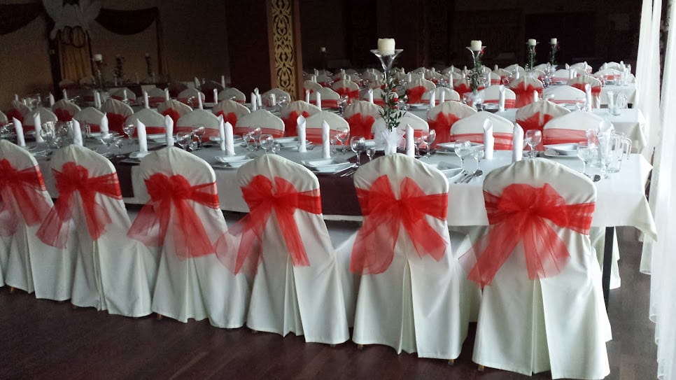 Do kokard wypożyczamy także białe lub czarne pokrowce na krzesła.