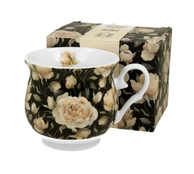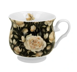 Intensywny wzór angielskich róż na tle głębokiej czerni tworzy kontrast pełen charakteru. To nie tylko naczynie – to wystrzał stylu, który wzbogaci każdą kuchnię lub biuro.