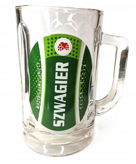 Szklany kufel z napisem