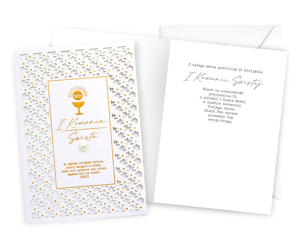 Nowoczesna kartka komunijna z kopertą i życzeniami 1147