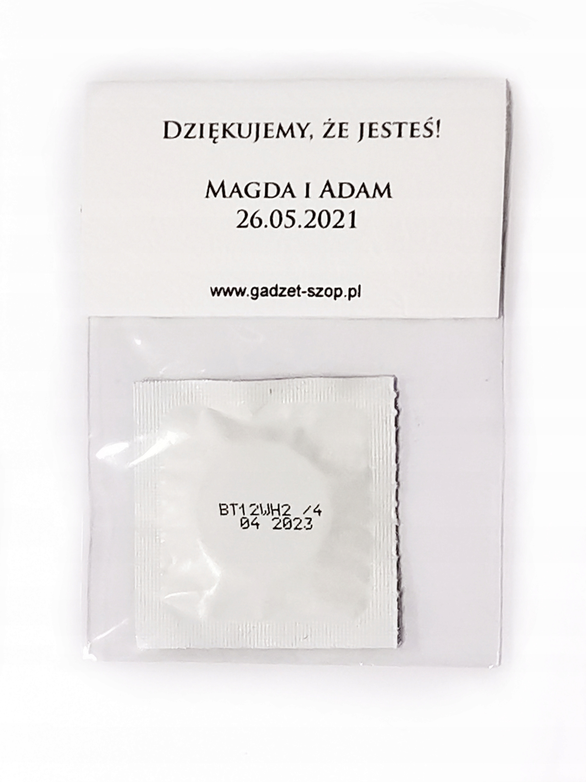 Na odwrocie: Dziękujemy że jesteś! oraz imiona i data.