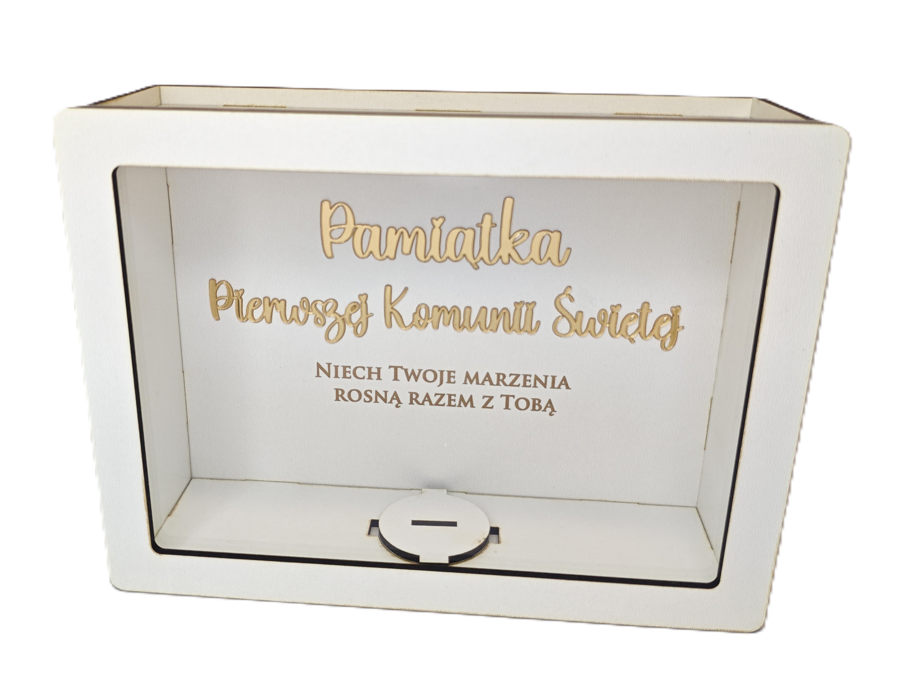 Skarbonka komunijna to doskonały sposób, aby wręczyć pieniądze w wyjątkowej formie. Zamiast tradycyjnej koperty podarujesz dziecku piękną pamiątkę, która pozostanie z nim na lata.