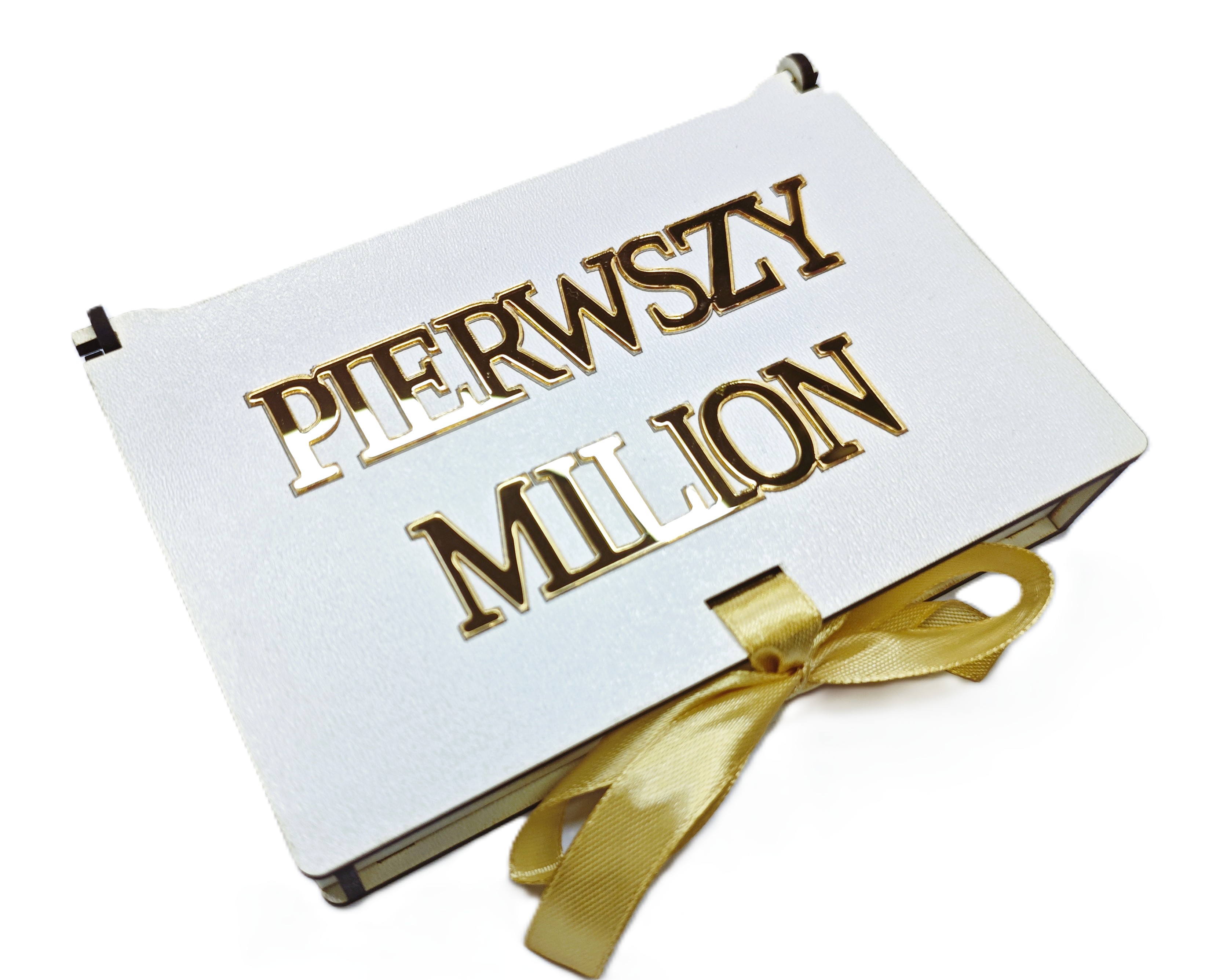 Drewniane pudełko na pieniądze z grawerem „PIERWSZY MILION” – elegancki sposób na wyjątkowy prezent gdy chcesz wręczyć banknoty w efektownym stylu!
