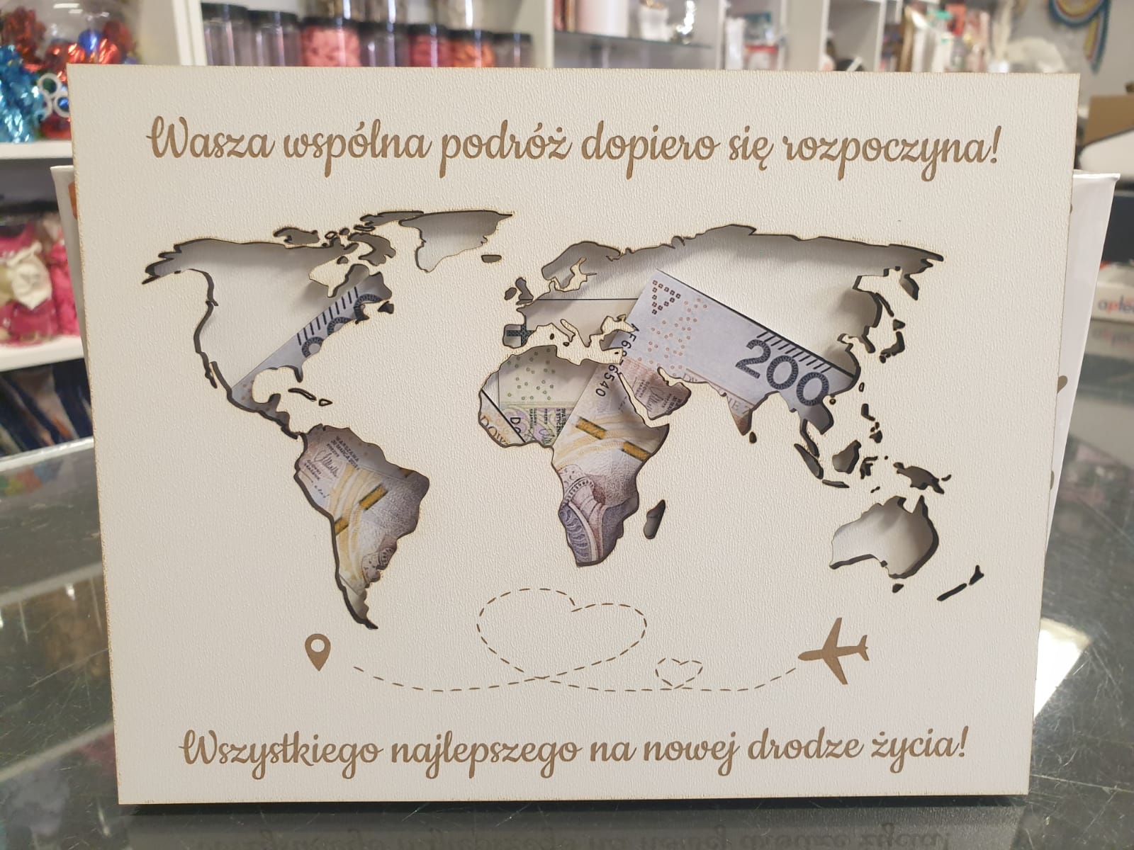 Grawerowana Skarbonka Mapa Świata dla Nowożeńców idealna na prezent w dniu ślubu!