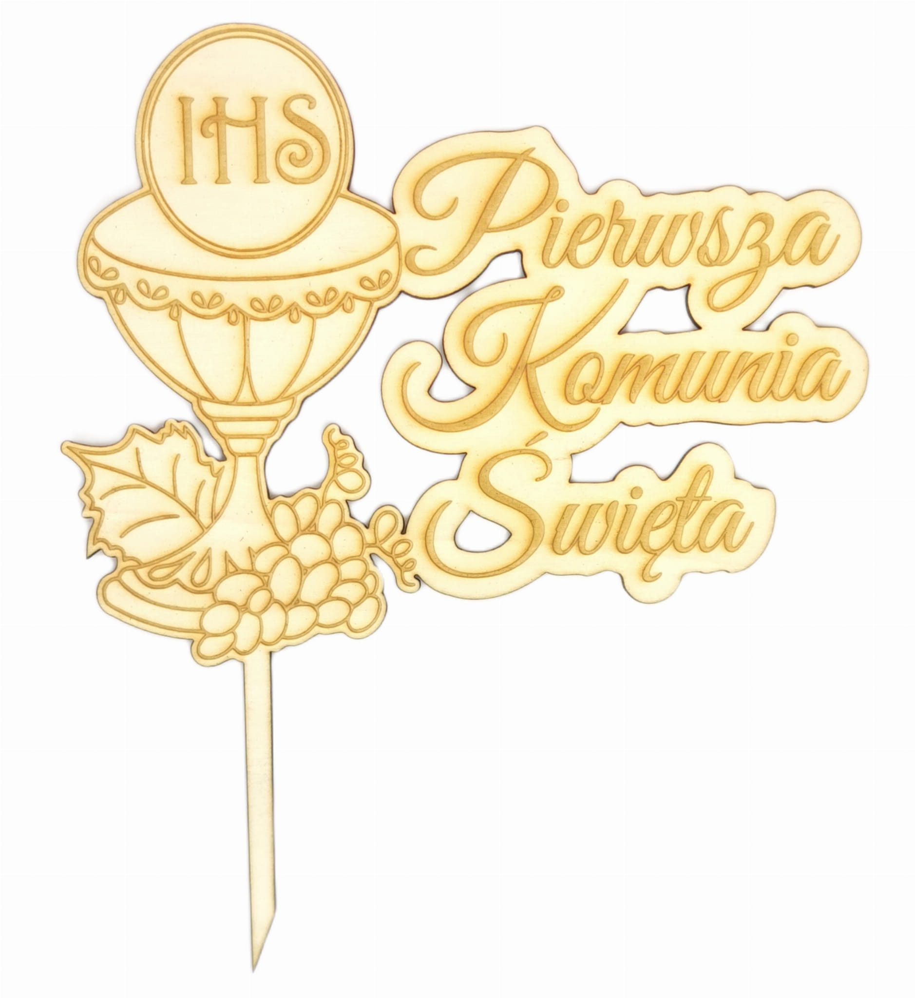 Topper na tort - KIELICH Z NAPISEM PIERWSZA KOMUNIA ŚWIĘTA
